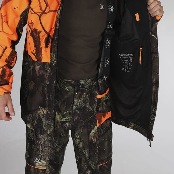 Alaska Extreme Lite Blaze 3D/BlindMax HD -miesten metsästyspuku on suunniteltu metsästäjille, jotka haluavat yhdistää turvallisuuden, suojan ja mukavuuden yhteen huippuluokan kokonaisuuteen. Puku tarjoaa optimaalisen näkyvyyden suurriistan metsästyksessä ja samalla erinomaisen maastoutumisen silloin, kun se on tärkeintä. Yläosan Blaze 3D -oranssi turvaväri varmistaa erottuvuuden metsässä, kun taas alaosan BlindMax HD -maastokuviooransseilla yksityiskohdilla auttaa sulautumaan ympäristöön tehokkaasti.